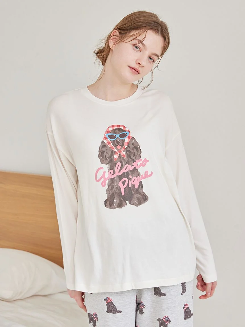 스카프 DOG 원포인트 롱 티셔츠